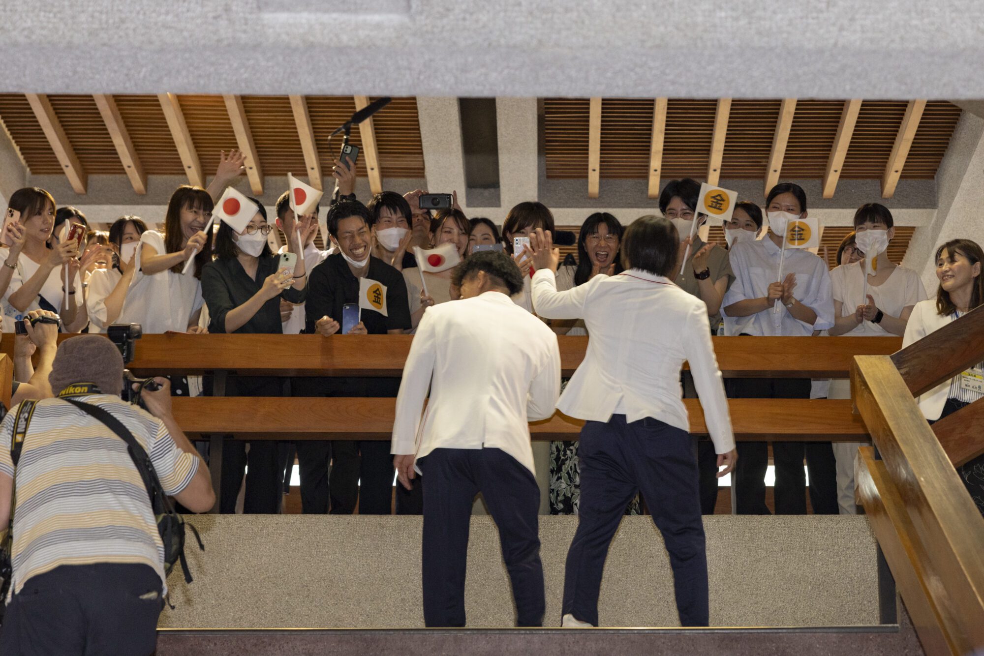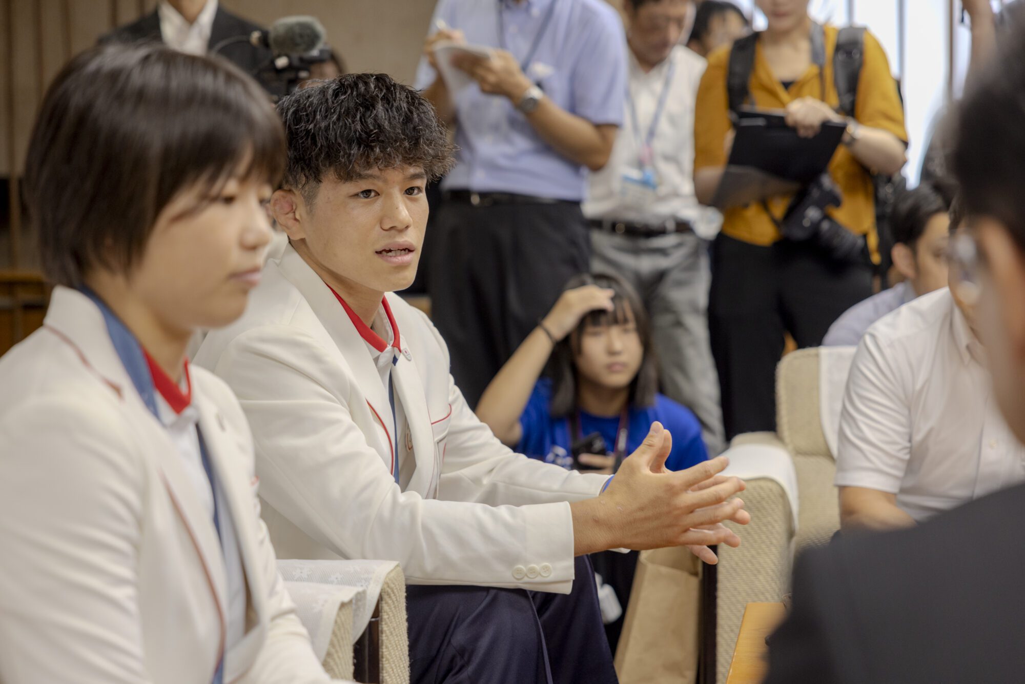 2024年8月22日,樱井惠选手和清冈幸大郎选手拜访了高知县厅,众多高知县政府职员和记者前来迎接,为两位选手的伟大事业祝福。