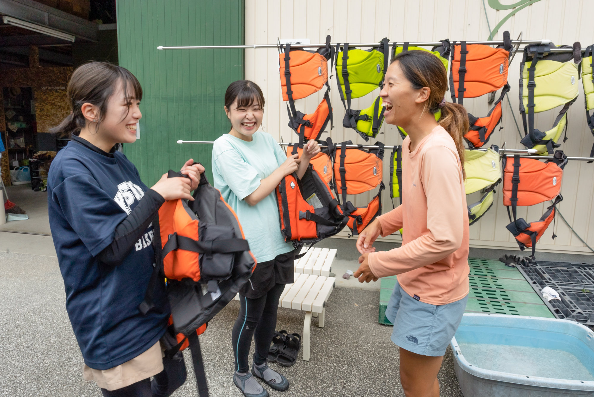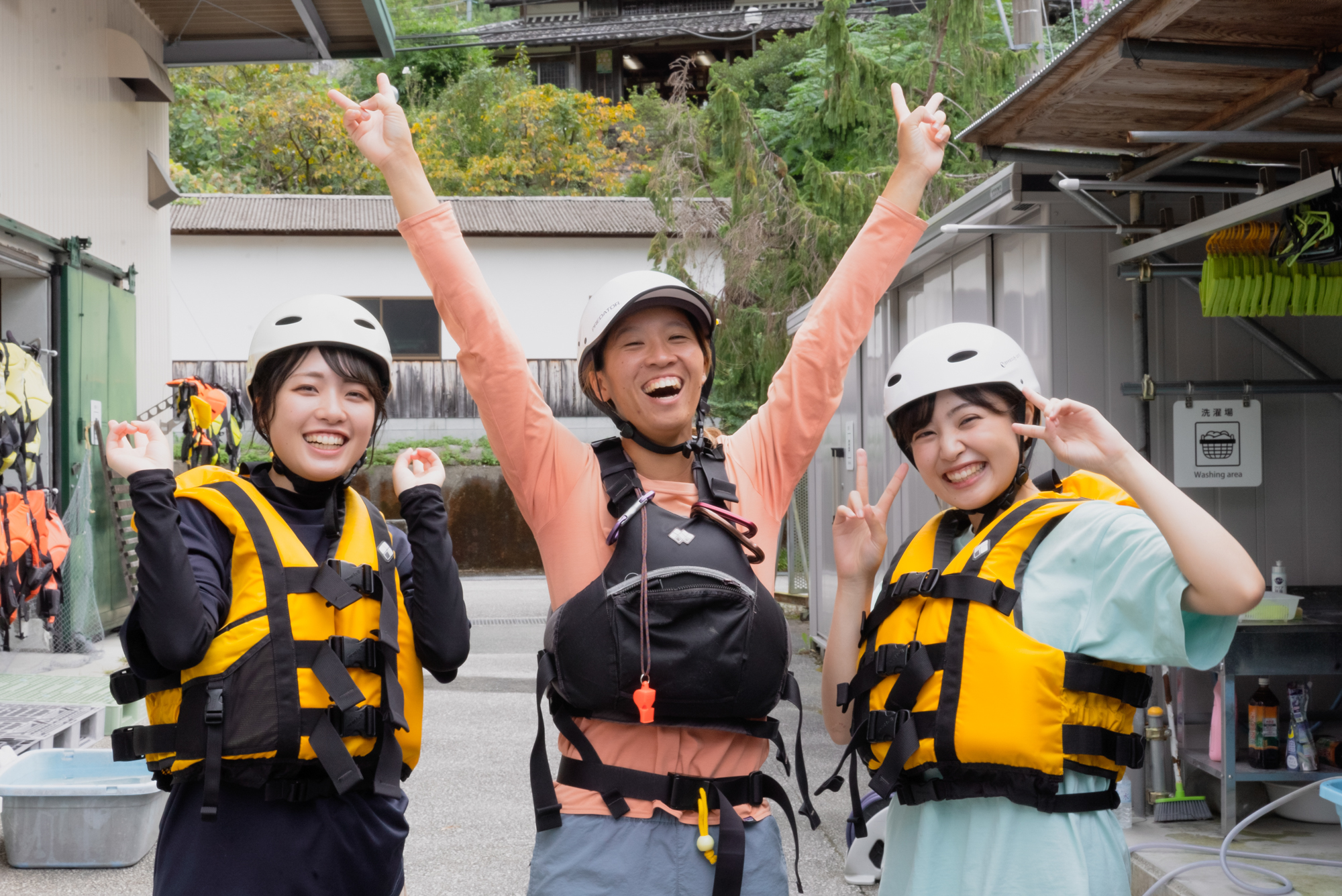 首先体验皮划艇。必要的东西可以租借,皮划艇的乘坐方法和划法由专职的教练好好指导,初学者也可以放心。首先在进入道之驿正面玄关的前台申请参加吧。