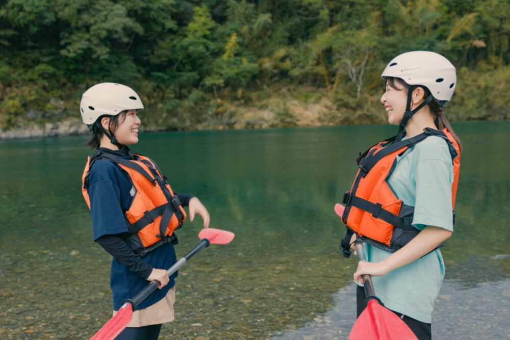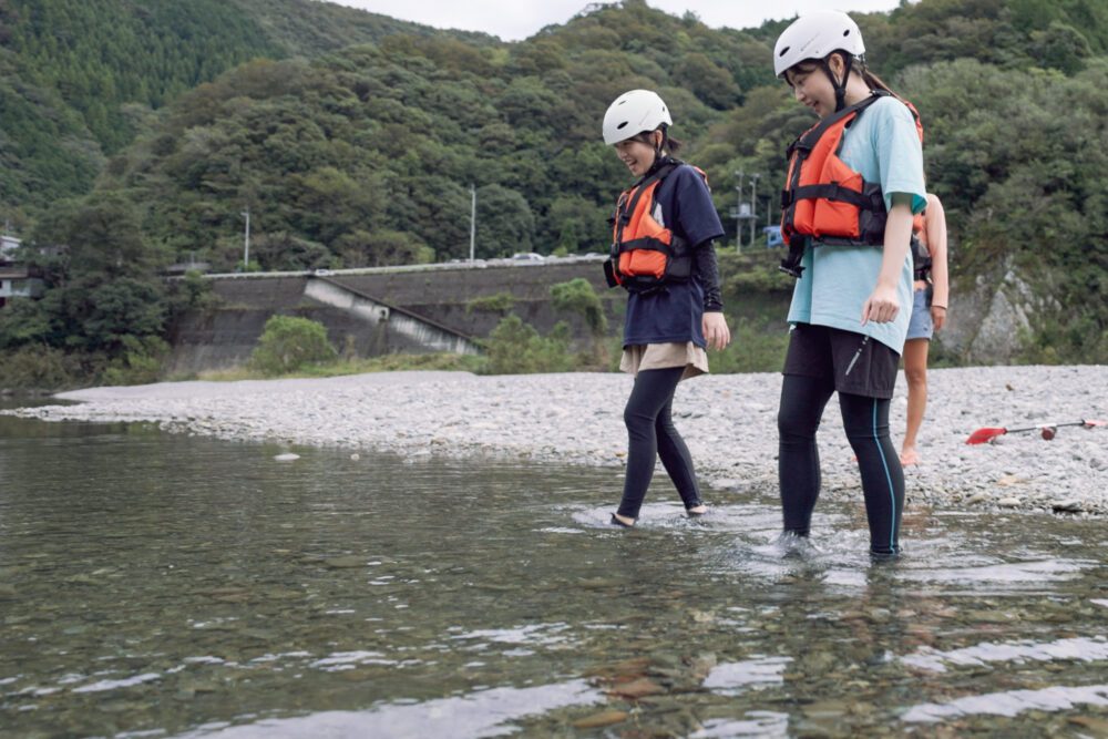 仁淀川水流缓慢,不擅长游泳的人也没关系。有经验丰富的导游支持,可以放心尝试。和大人在一起的话3岁以上的孩子也可以参加,带着家人也能享受冒险。