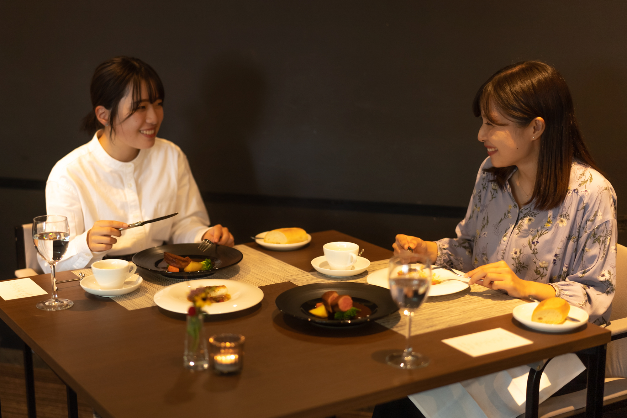 推荐的是热爱当地的厨师自豪的“NIYODO法式套餐”。 主要的肉料理和鱼料理自不必说,在当地收获的新鲜蔬菜和香草装饰得五彩缤纷的特色菜,都是用眼睛享受,在嘴里充满幸福感的绝品。连最后的甜点都会细心地给心灵和肚子带来丰富味道的和声。