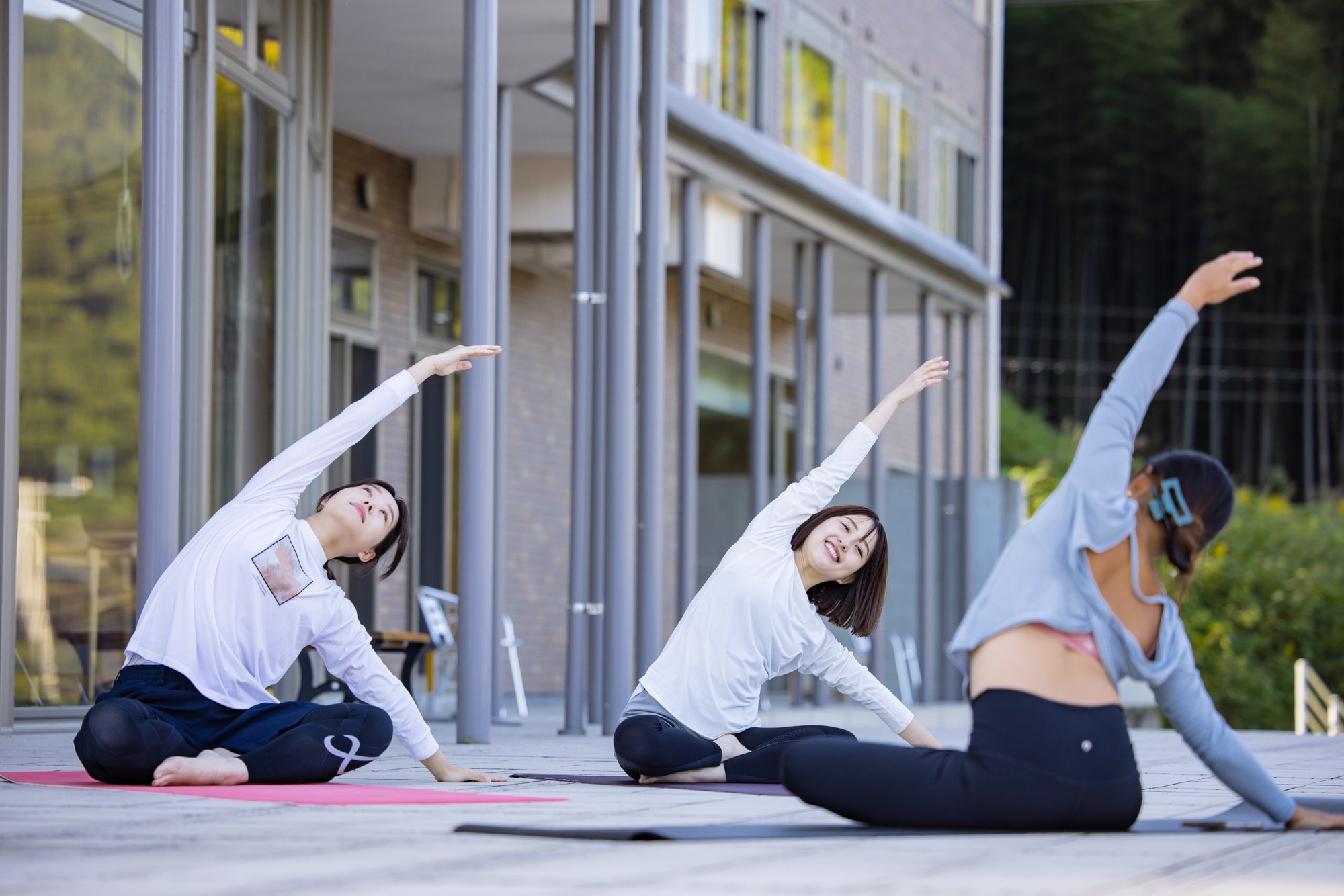 预约酒店住宿的时候一起预约的话可以体验到的“早餐瑜伽”。