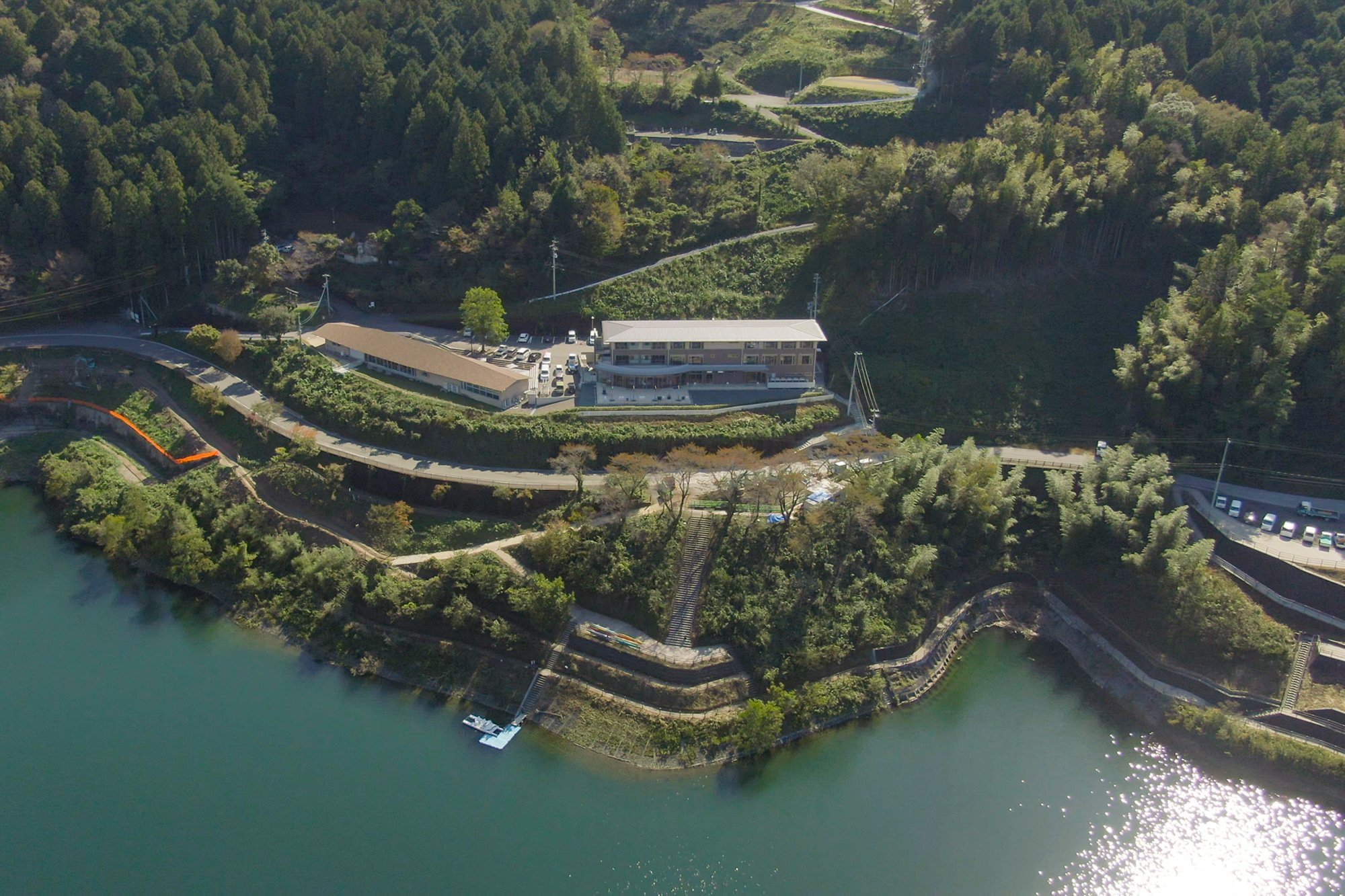 这是一个被称为“四国水缸”的“早明浦水库”的城市,作为享受水库湖的体验型观光据点而诞生的是由佐梅里卡努特拉斯、佐梅里庄湖畔酒店、佐梅里帐篷公园构成的“湖之站さめら湖城”。