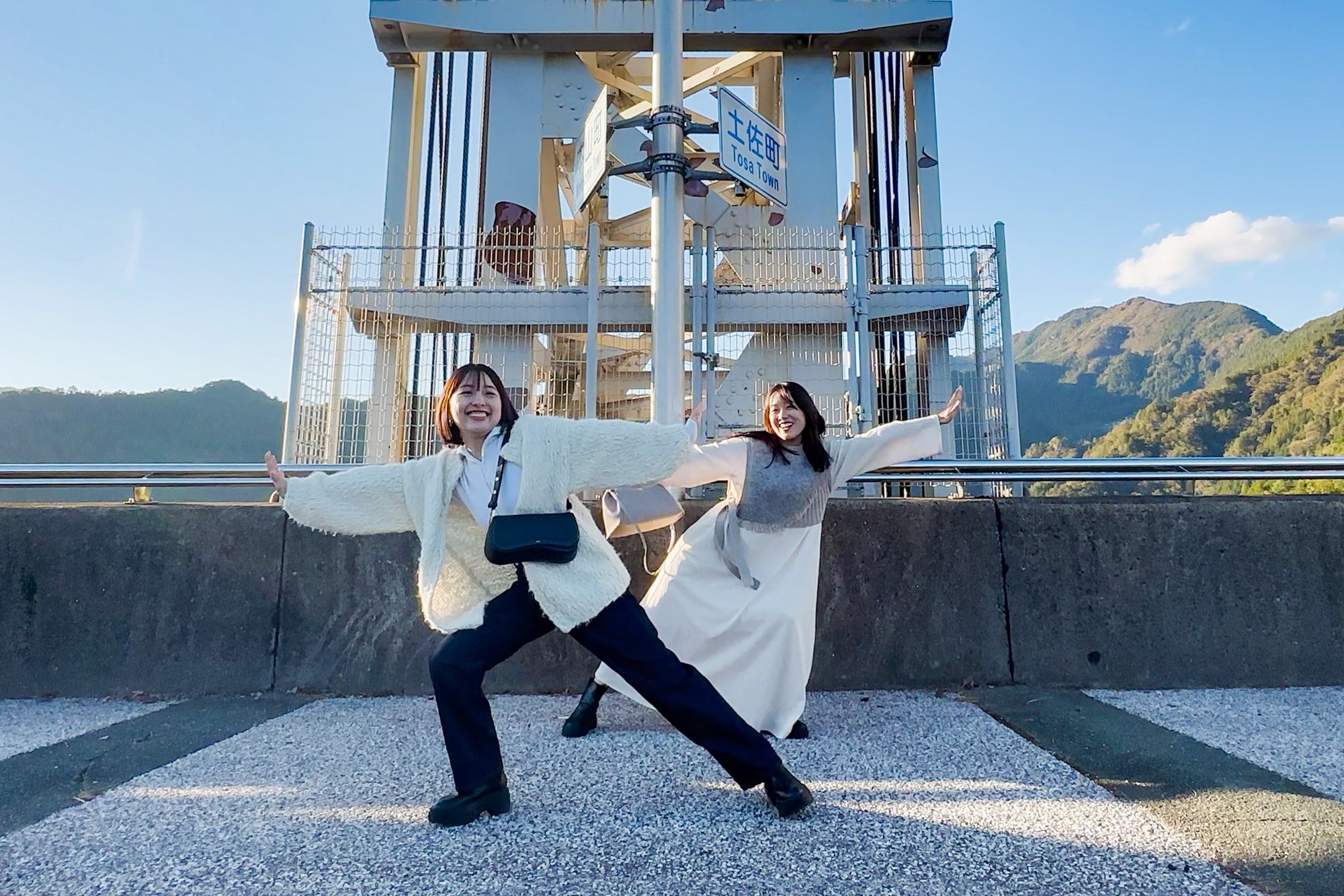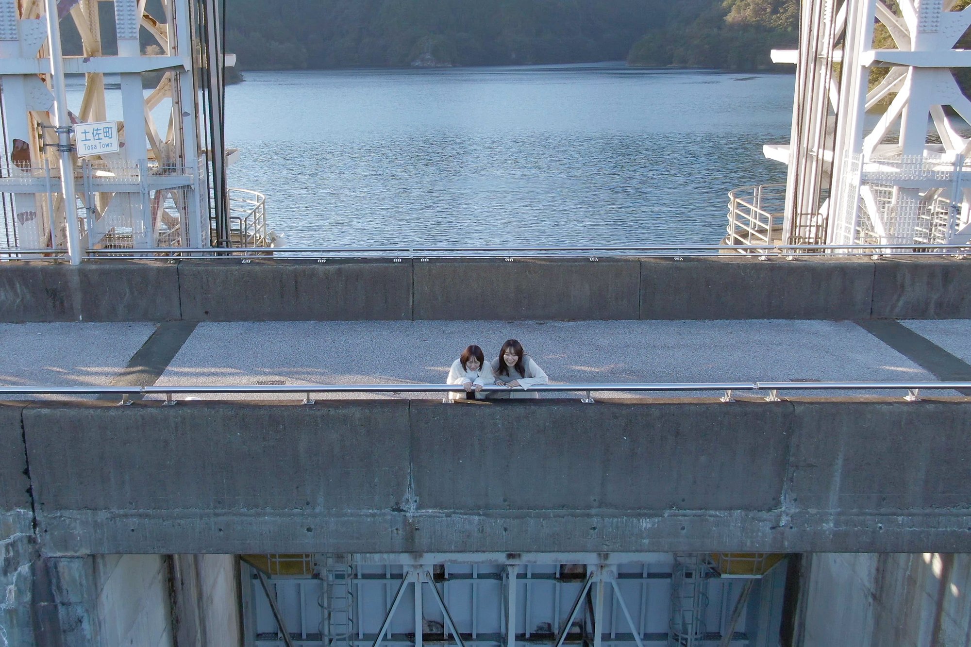 道路途中早明浦水库的招牌下面就是土佐町和本山町的分界线,推荐在那里拍照。