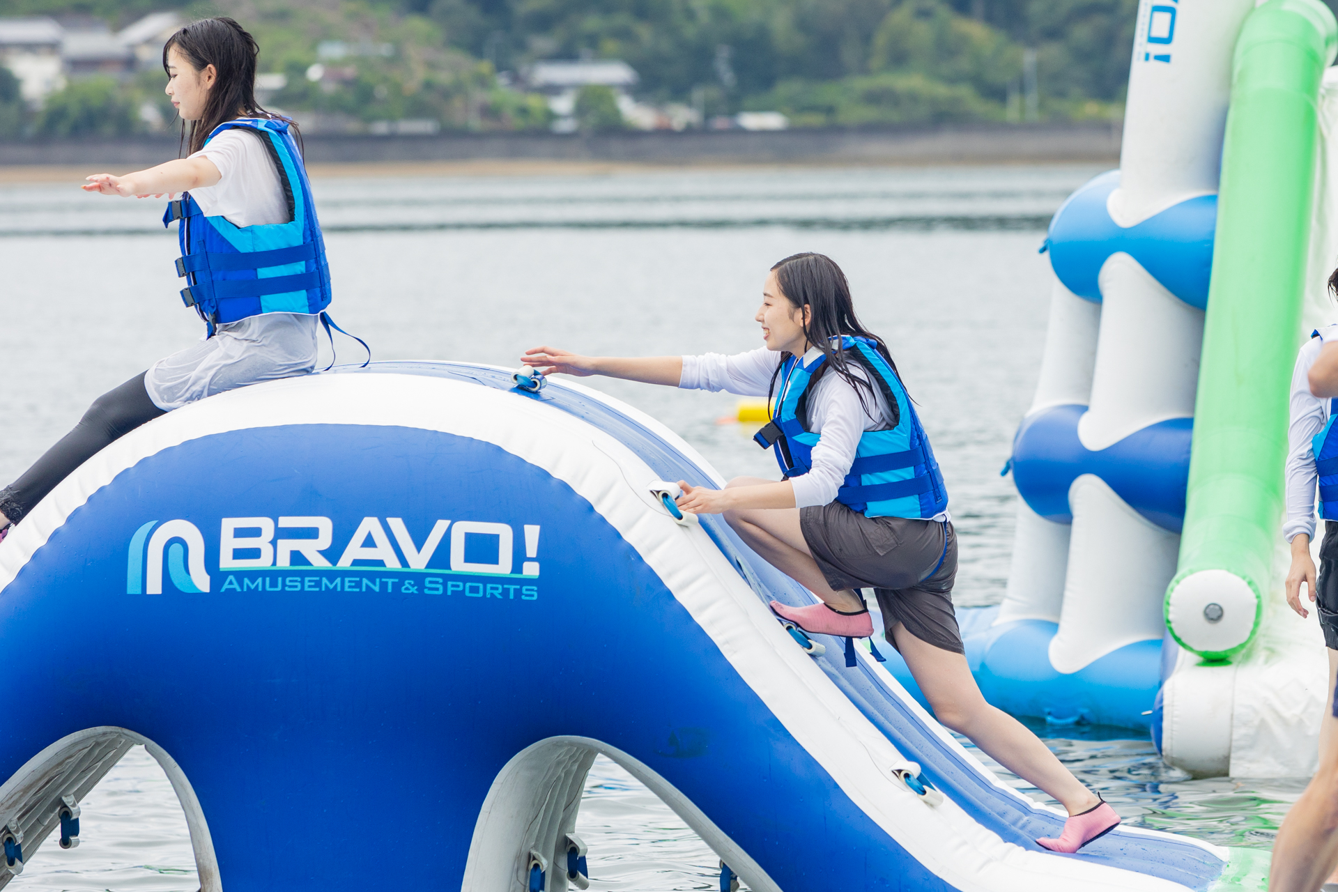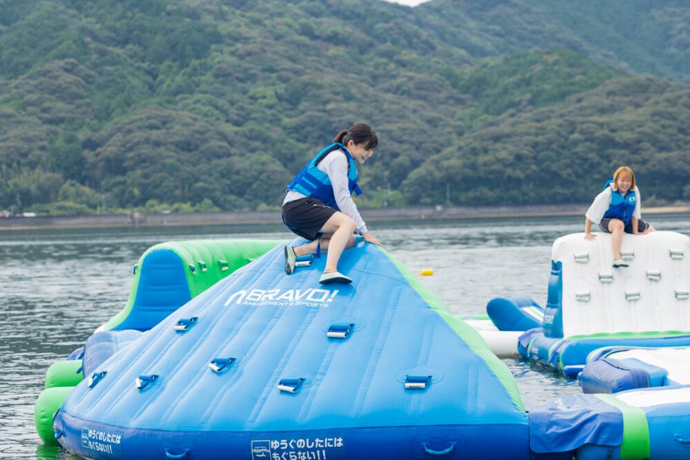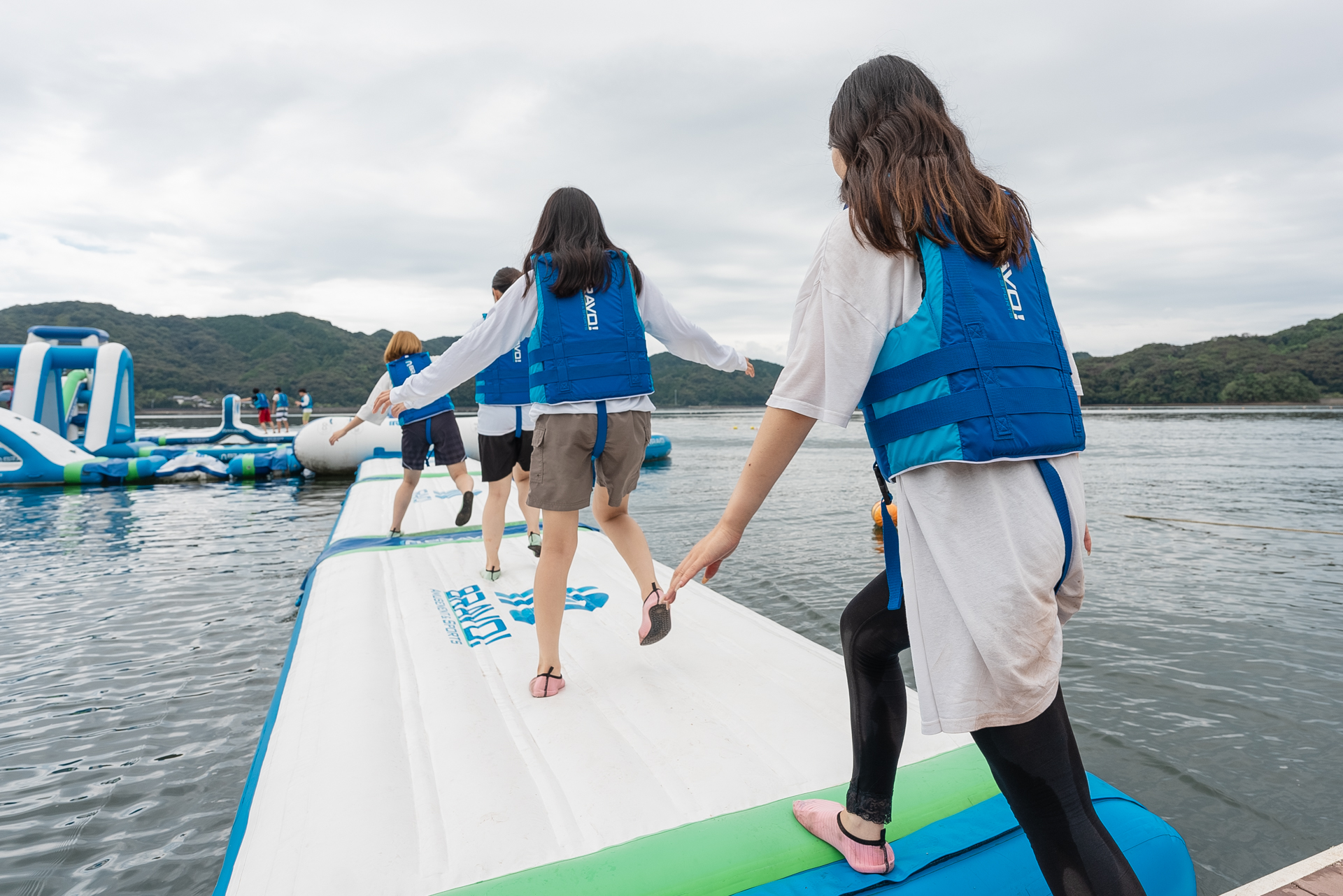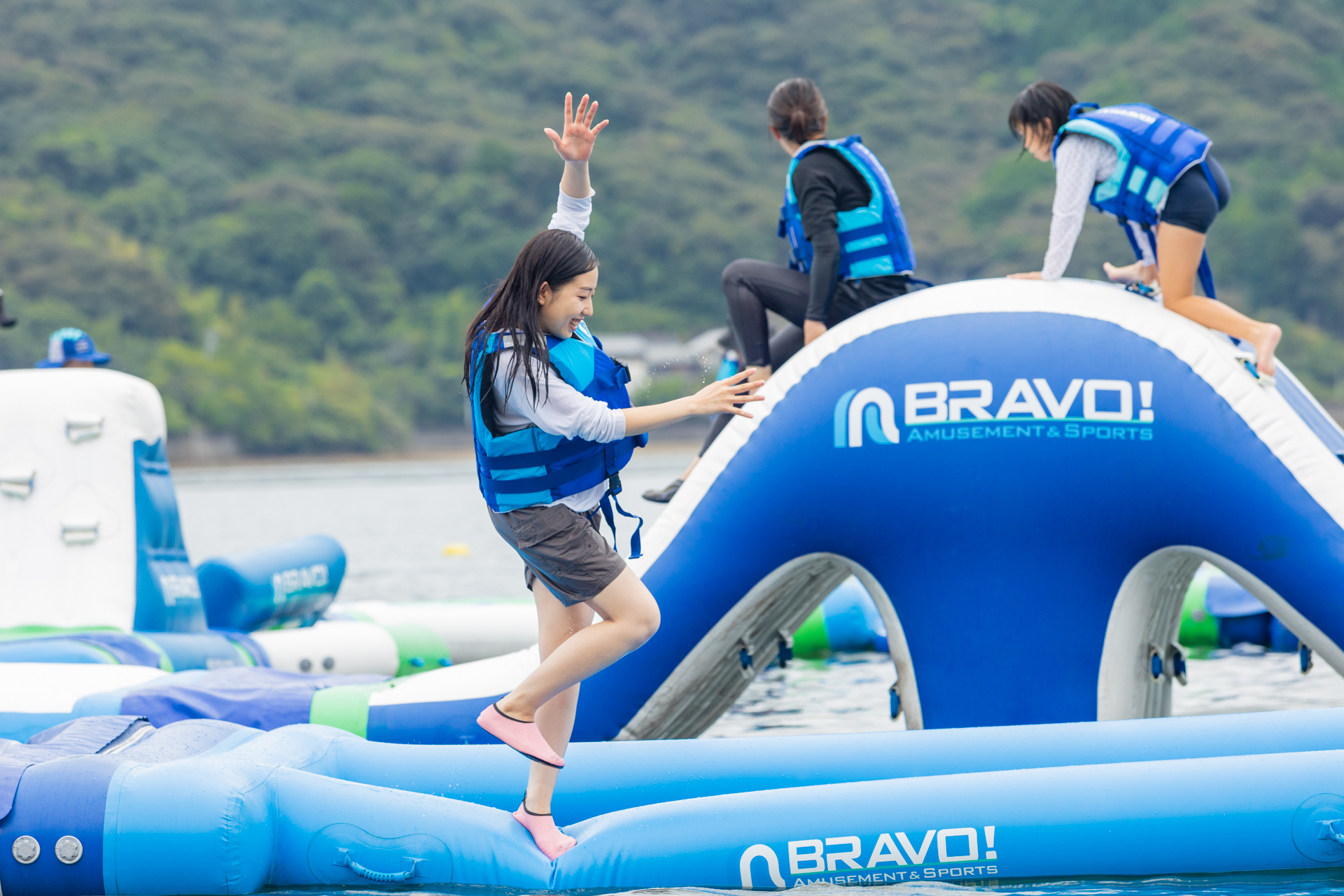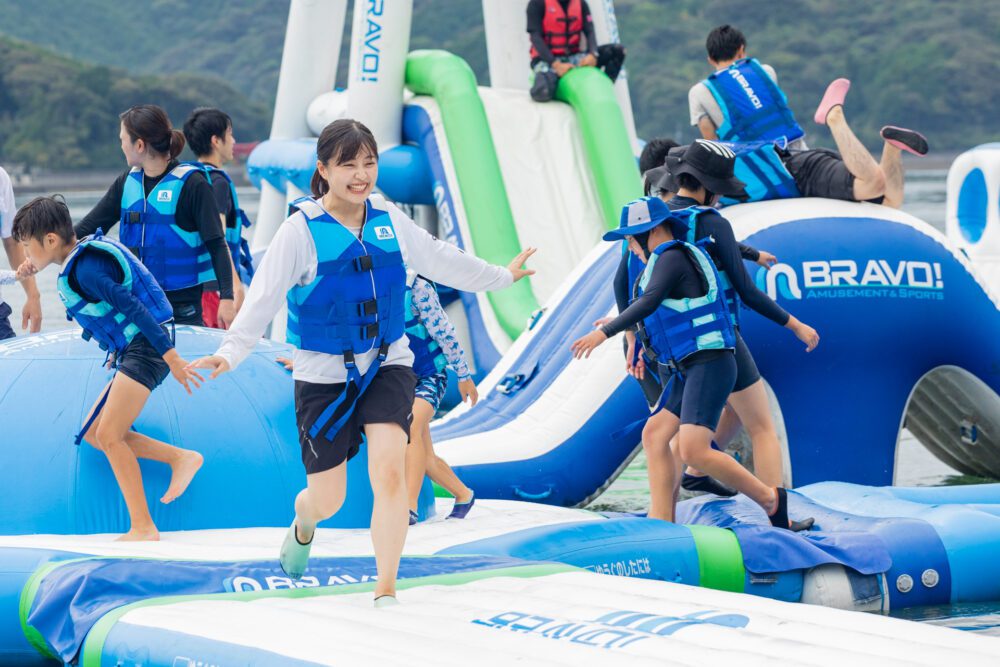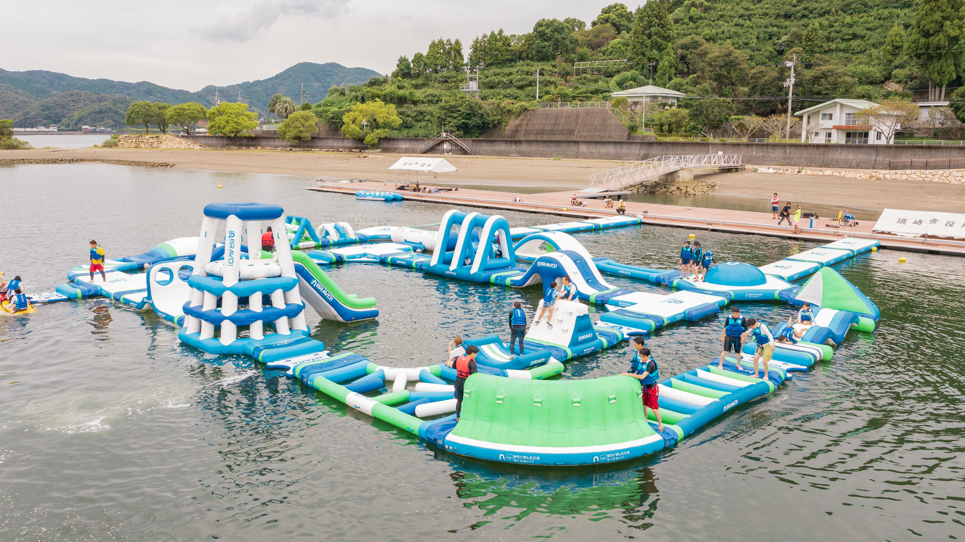像每年7月~9月左右的期间限定在须崎的海中登场的浮在海上的游乐园一样的“海上体育”。