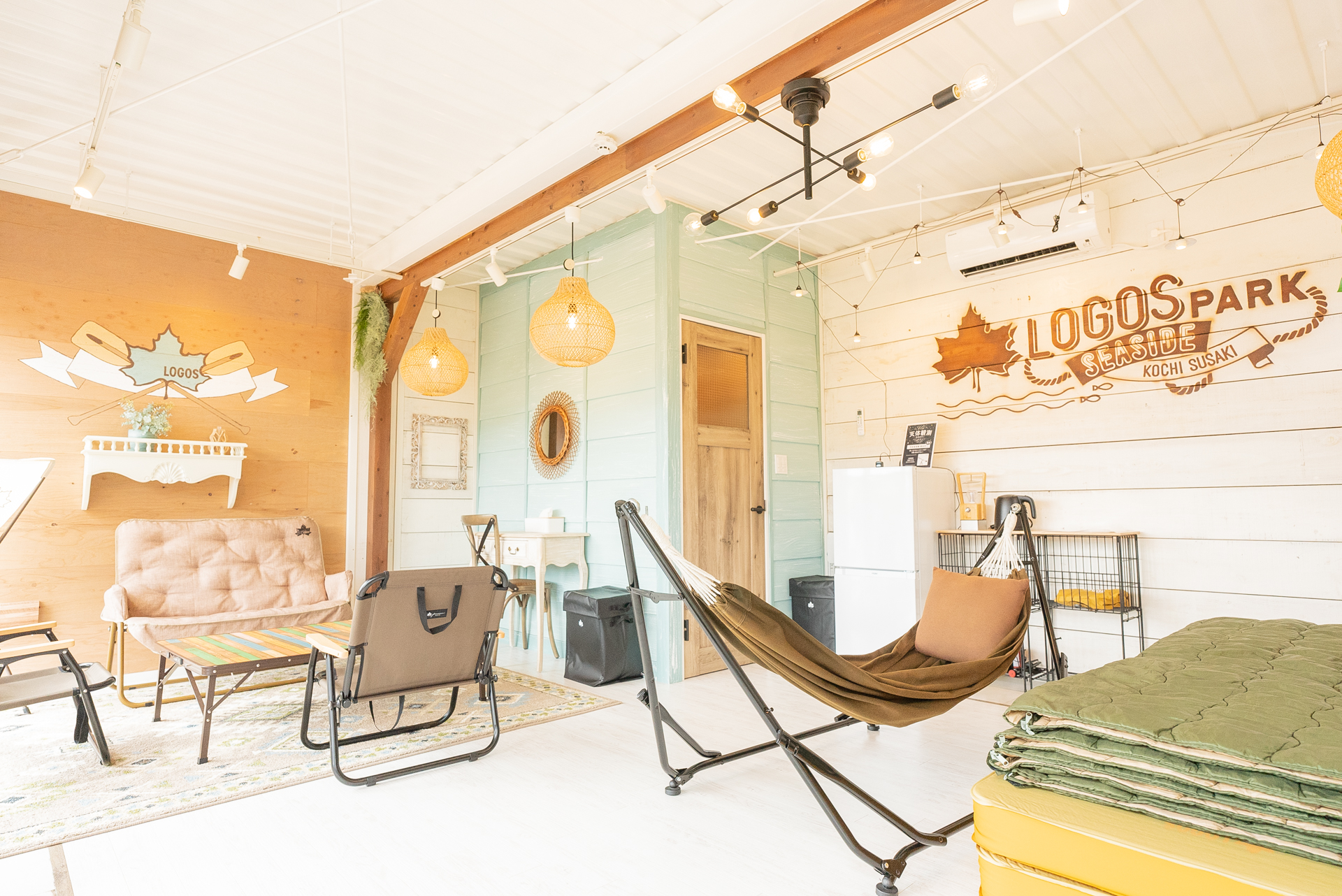 因为冷暖气设备齐全,所以可以不受天气和季节的影响而度过,而且室内还有很多logo物品。灯笼、床垫、沙发、桌子等全LOGOS!不仅可以尝试各种各样的东西,如果找到喜欢的东西的话就可以直接在商店里买到,也很方便。
