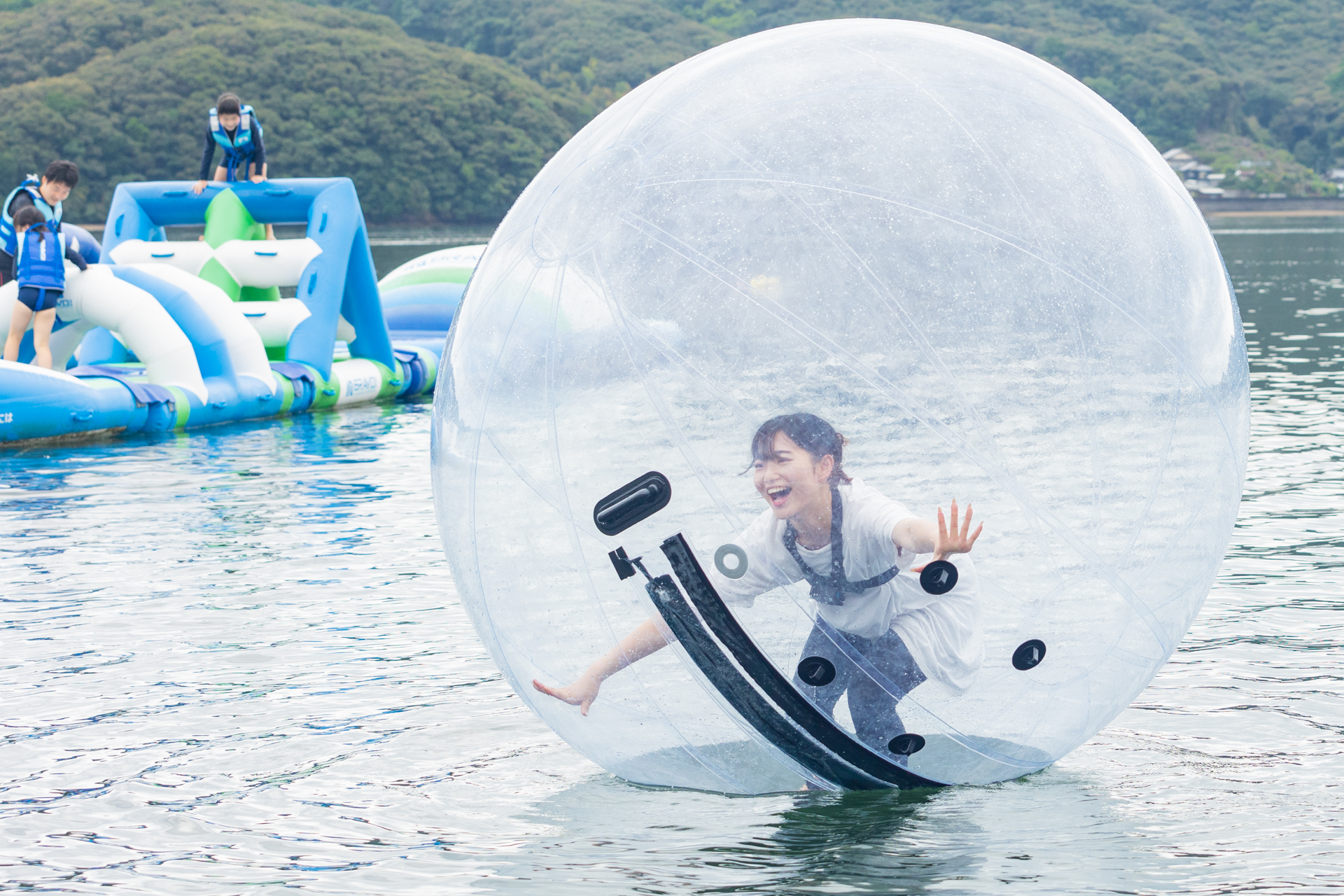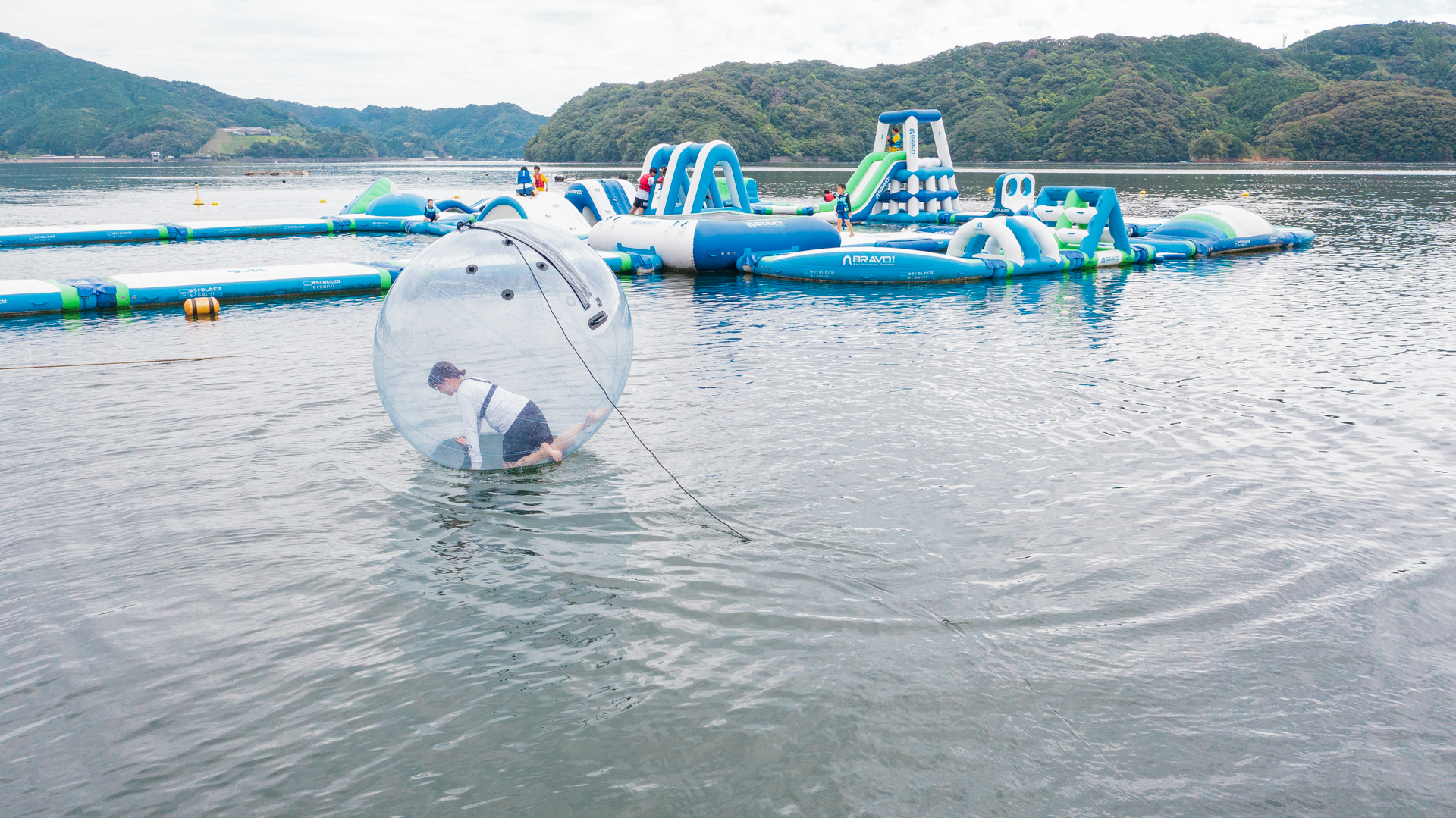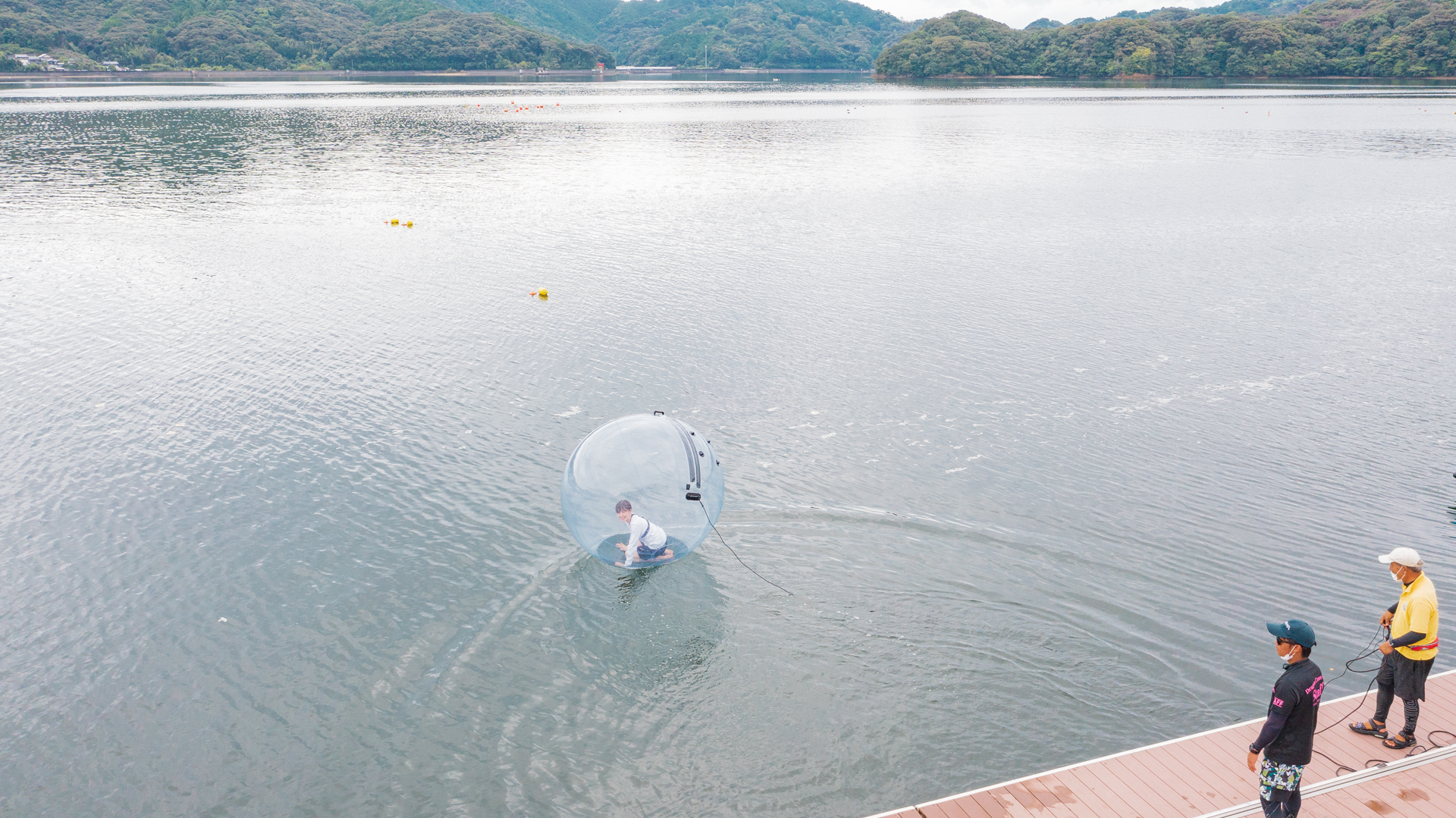 用透明的球体享受周围的景色,优雅地在海上散步… 这比想象中还要难! 别说是走路了,连站立都不行,更不用说跑了,难度太高了!! 但是,抓住诀窍的话可以很好地站着走着,可以体验到平时生活中体会不到的不可思议的感觉。♪